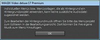 ich habe das individuelle DVD-Menue "Blumen" gewählt. Das hat keine Hintergrundmusik. Bei dem Versuch im "Bearbeiten"-Modus "Ton/Musik" anzuhaken, kommt folgende Meldung:
