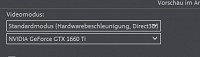 Nachdem mein alter Laptop mit dem neu gekauften Video Magix Video Plus 2021 (Version 20.0.1.80) immer aufhängte, habe ich mir aktuell einen DELL G3 15 3500 - WDP8D gekauft mit Intel® Core™ i7-10750H Prozessor NVIDIA GeForce GTX 1660Ti Grafik (6144 MB) 8 GB, RAM , 512 GB SSD, Win 10, Build 18363.1440, und dort das Programm installiert. Biede Grafikkarten habe ich über den Gerätemanager überprüft und sind aktuell.