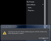 nach der Installation und Aktivieren der Downloadversion von VdL 2017 Premium (aka Movie Edit Pro Premium), allen Updates und Onlineergänzungen sind immer noch nicht die NewBlueFX Plugins (wie z.B. ColorFast oder DuoChrome) verfügbar. Nach Klick auf ExtraEffects -> Scan wird gezeigt, dass 10 Plugins gefunden wurden, aber erst nach Programmneustart verfügbar sein werden. Nach Programmneustart hat sich jedoch nichts geändert.