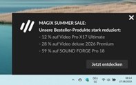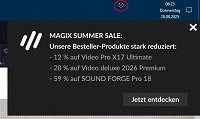 Beim Starten meines Notebooks - und zusätzlich beim Öffnen von MAGIX-Produkten wie Video Deluxe oder Music Maker - erhalte ich jedes Mal störende und äusserst lästige Push-Nachrichten von MAGIX. Diese betreffen neue Versionen, Aktionen oder andere Werbehinweise, die für mich in keinerlei Hinsicht von Interesse sind.