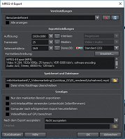 Folgende Einstellungen habe ich zum rendern gewählt (Voreinstellung mp4), selbe Problem mit .avi