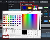 Hole dir aus den Vorlagen für Hintergründe (Designelemente) eine Farbfläche schwarz und füge sie über den Titel in die Spur ein. Mit Position/Größe, ohne die Proportionen beizubehalten, stellst du die Fläche wunschgemäß ein.