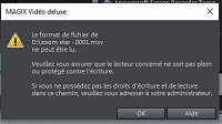 Voilà ce qui s'affiche lorsque j'essaie d'importer mon fichier .mxv sur une piste de magix.