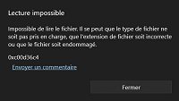 A l'issue de la barre de progression (d'export) il y a un temps de latence, le fichier s'exporte mais est illisible (voir pièce jointe) ensuite le logiciel se ferme et redémarre seul.