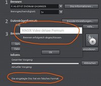 Möchte dazu mitteilen , dass ich eine maxell-DVD eingelegt habe die Platz für 4450 MB hat und mein Video ist nur 1550 MB groß.....! Und dann sehe ich folgende zwei Meldungen auf meinem Brennmenü ( rot eingekreist )