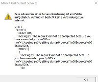 Ich nutze Photostory Delux (Version 20.0.1.62) und jedes mal, wenn ich meine Fotostory als Video in YT hochladen will, bekomme ich eine Fhlermeldung: Beim Absenden der Serveranforderung ist ein Fehler aufgetreten. Vermutlich besteht keine Verbindung zum Internet.
