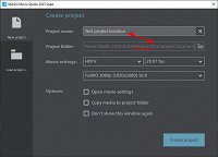 1. On the New screen, you can put in a Project name. By default, under Options, "Copy media to project folder" is not checked. The Project folder is greyed out because it is using the default location and nothing will go there other than the small project file and rotating backups.