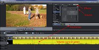 I have added a backing track and want to lower the volume of a section of this track while a narration plays from the original imported video. I can't work out how to select the portion of the backing track to adjust the volume, then bring it back to the original volume once the narration has finished.