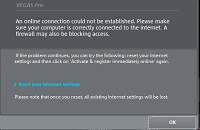 Hi need some help here , I just got my Vegas Pro 23 : Steam Edition ,there is nothing wrong about program when I render by my old laptop it's totally fine, but when I try to render on my new laptop it will not responding for second and it said " an online connection could not be established " I try everything I could, "Disable Firewall" "Disable Antivirus" "Factory reset my laptop" I'm also ask my friend to download Vegas from my steamid and try rendering video with their pc , three of them can render without any problem, I'm so lost here please help